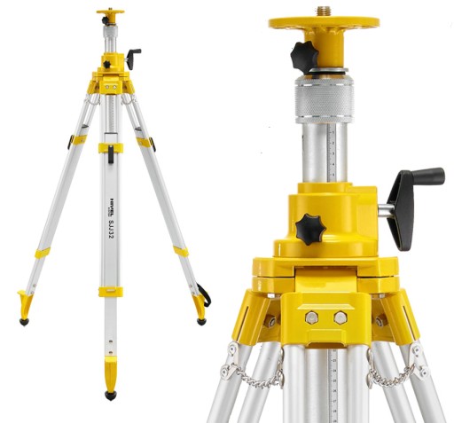 - precyzyjna regulacja wysokości – aluminiowe statywy z wysięgnikiem o maksymalnej wysokości 3,2 m do niwelatorów laserowych