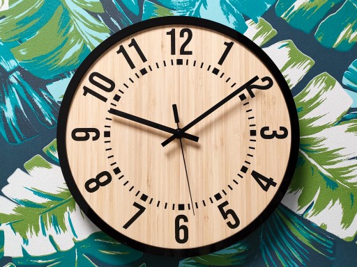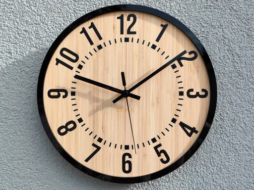 - Tarcze zegara: BAMBUS naturalny + dopełnienie stanowi ciekawa CZARNĄ oblamówka