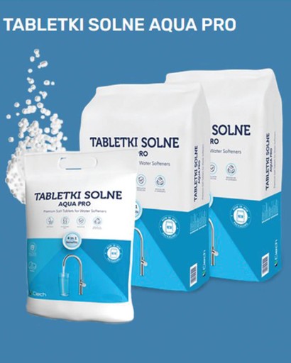 Tabletki Solne - stosowane są w systemach zmiękczania wody, m.in. do regeneracji wymienników jonitowych, zmiękczaczy wody i filtrów multi-funkcyjnych, które wychwytują składniki powodujące twardość wody (wapń i magnez).