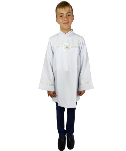 Polecamy albę uszytą z należytą starannością z delikatnej, białej tkaniny. Odpowiednia dla chłopca.