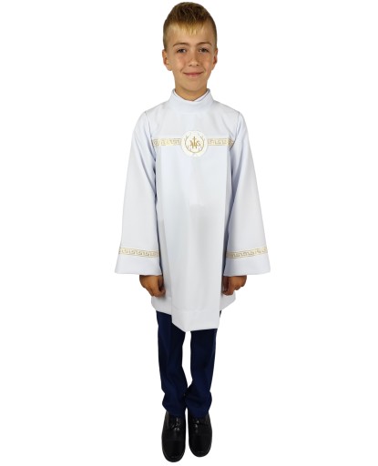 Polecamy albę uszytą z należytą starannością z delikatnej, białej tkaniny. Odpowiednia dla chłopca.