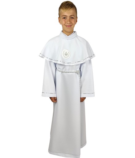 Polecamy albę uszytą z należytą starannością z delikatnej, białej tkaniny. Odpowiednia zarówno dla chłopca, jak i dla dziewczynki.