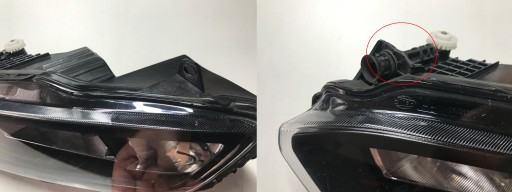 Halogen ma urwane jedno mocowanie (oznaczone).