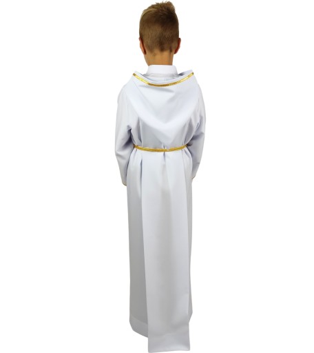Polecamy albę uszytą z należytą starannością z delikatnej, białej tkaniny. Odpowiednia dla chłopca.