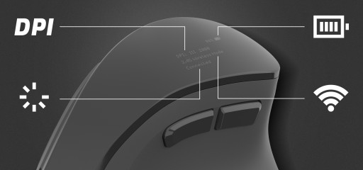 Potwierdzeniem funkcjonalności i nowoczesności myszki jest zamontowany wyświetlacz na górze obudowy, który wyświetla wszystkie najważniejsze informacje takie jak: aktualny poziom baterii, stan połączenia bezprzewodowego oraz aktywna rozdzielczości DPI. Z myszką Natec Euphonie niczego się nie musisz domyślać, ponieważ wszystko widzisz na bieżąco na ekranie, co znacznie usprawnia codzienną pracę.