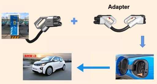Aby bezproblemowo naładować swoje auto z takich właśnie stacji musimy użyć adapter/konwerter CCS2 do CCS1 Combo 2 do Combo 1.