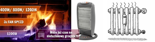 OSZCZĘDŹ NA RACHUNKU ZA ENERGIĘ 3- POZIOMY REGULACJI MOUY 400W/ 800W/1200W, CIEPŁO ODDAJE PANEL HALOGENOWY