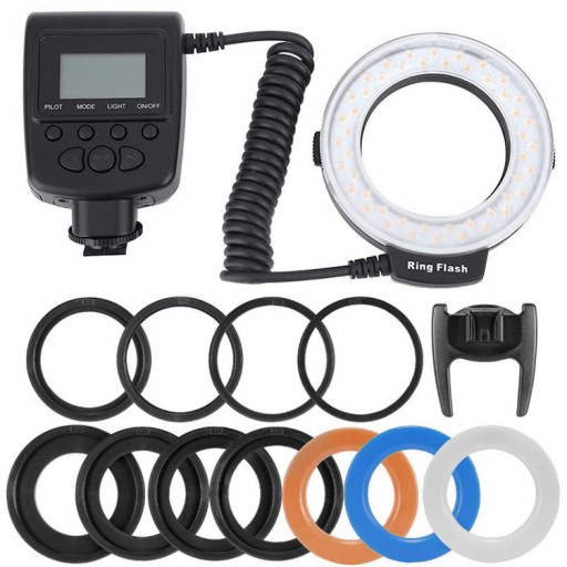 Lampa PIERŚCIENIOWA - BŁYSKOWA, 2w1 do makro z LCD, model CM-RFD uniwersalna