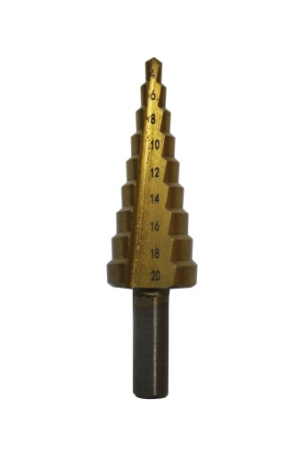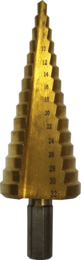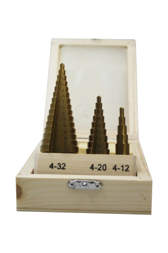 Komplet wierteł stopniowych ze stali HSS powlekanej warstwą tytanu. Zestaw pozwala na wiercenie idealnie okrągłych otworów w stali, mosiądzu, miedzi, aluminium, drewnie i tworzywie sztucznym.