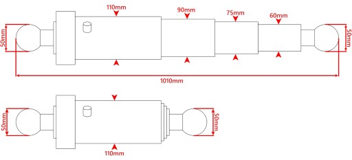 - Długość siłownika całkowicie rozsuniętego 1010 mm