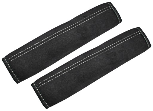 Nakładki wykonane są z eleganckiego materiału typu ALCANTARA, przeszyte mocnymi nićmi tapicerskimi a na ich brzegach znajduje się lamówka. Wypełnione są miękką warstwą gąbki poprawiając komfort podróżowania sprawiając, że pas nie wbija się w ciało.