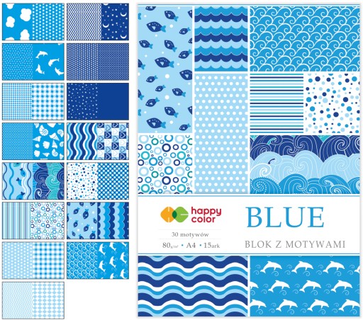 Happy Color БЛОК С МОТИВАМИ Синий А4 80г 15 листов