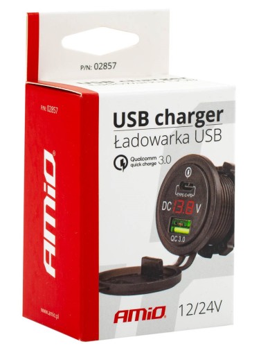 Wodoodporna ładowarka USB + USB C + tester napięcia 12/24V