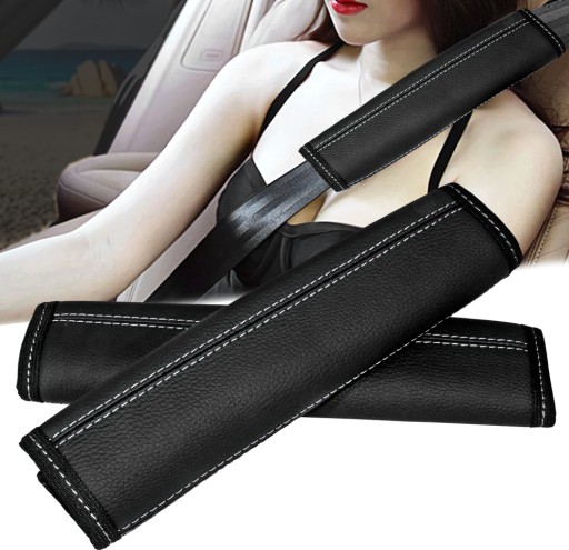 ✅ KOMPLET (2 szt.) NAKŁADKI NA PASY BEZPIECZEŃSTWA EKO SKÓRA