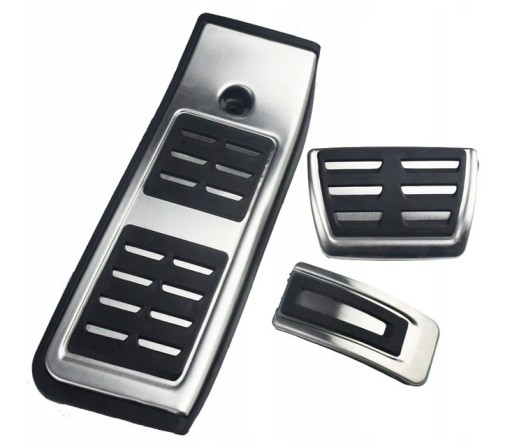 Nowy komplet sportowych nakładek na pedały oraz podstopnicę do samochodów A4 B9 i wiele wiele innych z takim kształtem pedałów. Wersja z automatyczną skrzynią biegów.