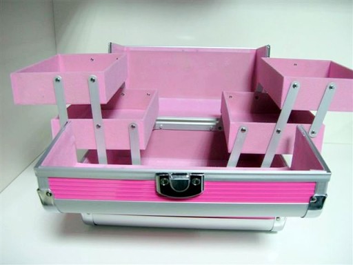 Różowy Kufer na kosmetyki, akcesoria, lakiery, żele, małą lampę UV model CM-002D