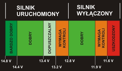 Zakres mierzonych napięć od 8 V do 30 V