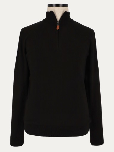 Sweter męski BASIC MAUNA, w czarnym kolorze. Sweter o prostym, ponadczasowym kroju na każdą okazję. Wykonany z gładkiej dzianiny o lekko widocznych oczkach. Jest komfortowy i niezwykle przyjemny w dotyku. Uszyty 50% najwyższej jakości bawełny z dodatkiem 50 % akrylu. Materiał jest odporny na mechacenie i rozciąganie. Model ma wysoką stójkę i dekolt zapinany na zamek. Dół swetra i rękawy wykończone są ściągaczem w tym samym kolorze. Sweter idealnie sprawdzi się w codziennych stylizacjach. Model BASIC MAUNA to doskonała propozycja dla mężczyzn ceniących sobie praktyczność i uniwersalność. Doskonale podkreśla sylwetkę mężczyzny oraz dodaje mu indywidualnego charakteru.