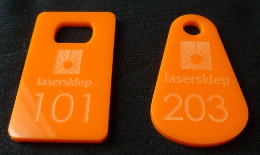 - Brelok wykonujemy techniką grawerowania laserowego na wysokiej jakości pleksi (szkło akrylowe) grubości 3 mm
