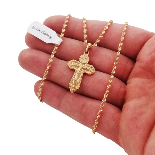 ZŁOTY ŁAŃCUSZEK SINGAPUR SKRĘCANY 60 CM + KRZYŻYK