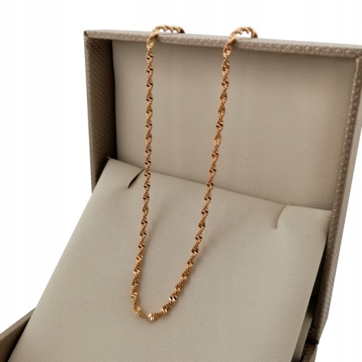 Przedstawiamy państwu unikatowy damski naszyjnik na łańcuszku singapur. Produkt został wykonany z najwyższej jakości stali chirurgicznej. Całość została pokryta prawdziwym 18 karatowym złotem. W zestawie jest również pisemna gwarancja. Ten model naszyjnika z pewnością doceni każda kobieta. Łańcuszek jest solidny i wytrzymały, więc spokojnie posłuży długi czas.