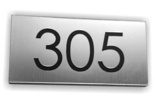 Numerek wykonujemy techniką grawerowania laserowego na wysokiej jakości laminacie grawerskim o grubości 1,6 mm