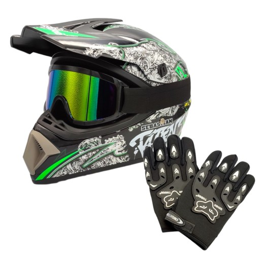 CROSSOWY KASK MOTOCYKLOWY + GOGLE + RĘKAWICE