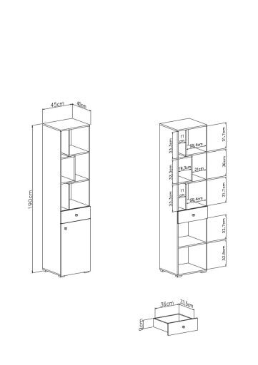 - regał SIGMA SI08: 45 / 190 / 40(szer/wys/gł)