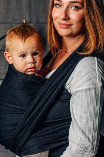 Jodełkowa chusta do noszenia dzieci LennyLamb z serii "Moja druga..." - Mała Jodełka Czarny Heban 3.6 m.