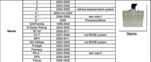 1.Mazda 6 od 2006 roku (w modelach od 2003 do 2005 roku konieczne jest przelutowanie zworki w radiu o symbolu L716)