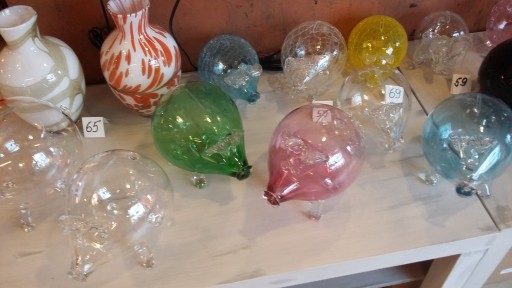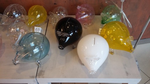 Świnki są produkowane w różnych kolorach jak i wykończeniach takich jak gładkie, z bąbelkami powietrza wewnątrz szkła oraz popękane.