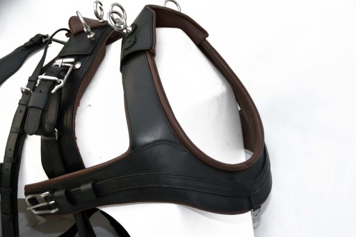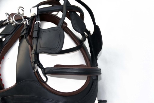 UPRZĄŻ SINGLOWA CHOMĄTOWA FRANCUSKA MARATON Roz. full Uprząż wykona w całości bardzo dobrej selekcjonowanej skóry licowej ,bardzo miękkiej i miłej w dotyku ,we wszystkich elementach uprzęży wszyta taśma ,która ma zadanie wzmocnienie skóry. Okucia wykonane ze stali nie rdzewnej ,dwa zakresy regulacji chomąta. BARDZO NISKA CENA .PROMOCJA