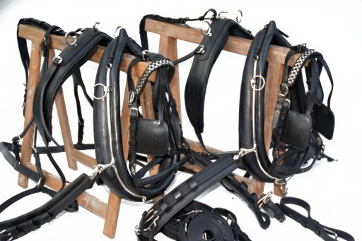 Uprząż chomątowa Angielska na parę koni roz.FULL . Uprząż wykona w całości bardzo dobrej selekcjonowanej skóry licowej ,bardzo miękkiej i miłej w dotyku ,we wszystkich elementach uprzęży wszyta taśma ,która ma zadanie wzmocnienie skóry.Profilowane piersi wyposażone w napierśniki ,popręgi anatomicznie profilowane ogłowia anatomiczne w części potylicznej i nachrapnik zrobiony na miękko Okucia wykonane ze stali nie rdzewnej .jedyna taka uprząż na rynku ,perfekcyjnie wykonanie.Polecam