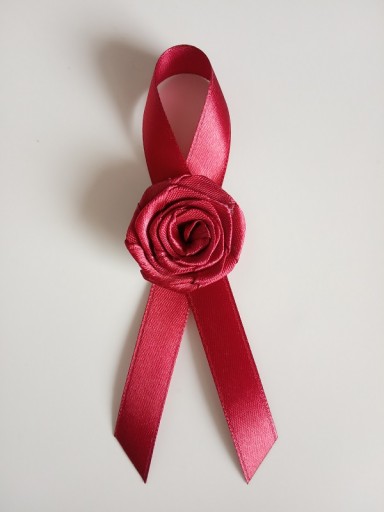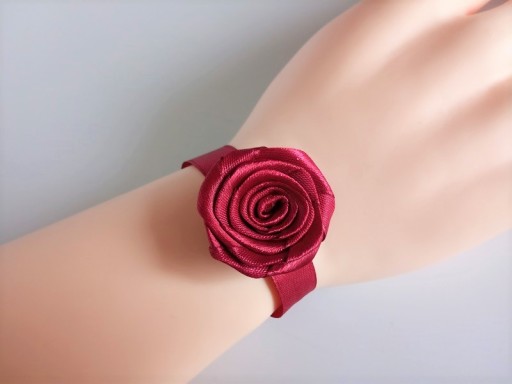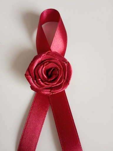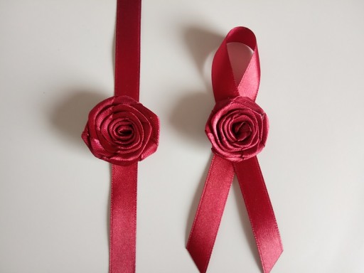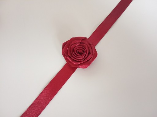 Ozdoba wykonana jest z satynowej różyczki i wstążki.