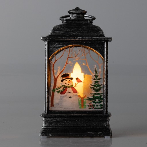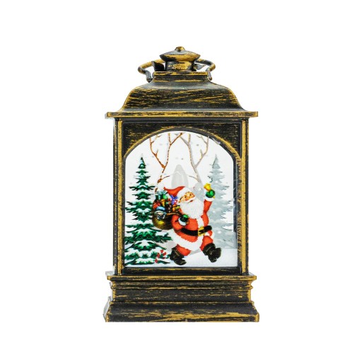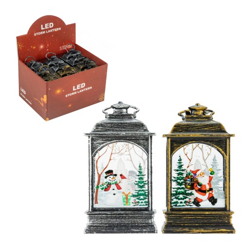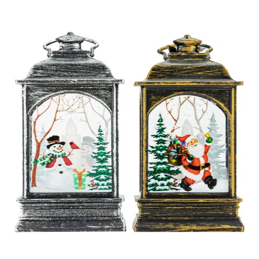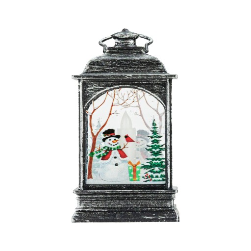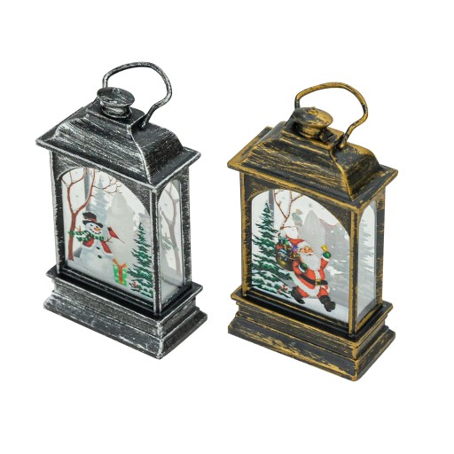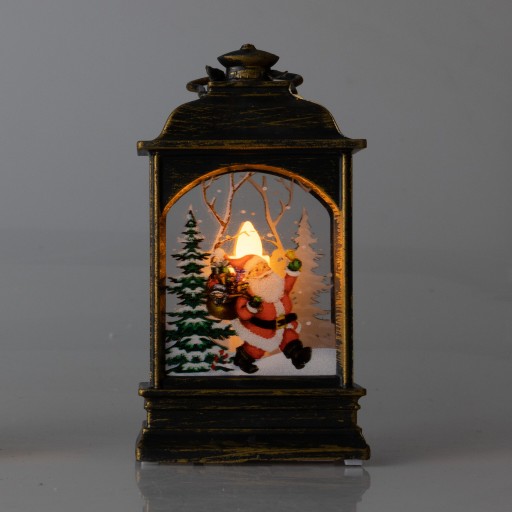 Świąteczna latarenka zasilana trzema bateriami LR44 (w zestawie). Doskonale sprawdzi się jako odrębna dekoracja lub element stroika świątecznego. Latarenka świeci ciepłym, ruchomym światłem dzięki mocnej diodzie LED. Z dwóch stron posiada zimowo-świąteczne kolorowe ilustracje. Można postawić ją na szafce, kominku, stole, a także powiesić dzięki specjalnemu oczku zamontowanemu na szczycie.