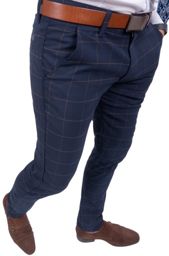 - Spodnie wizytowe w kratkę bez kantów