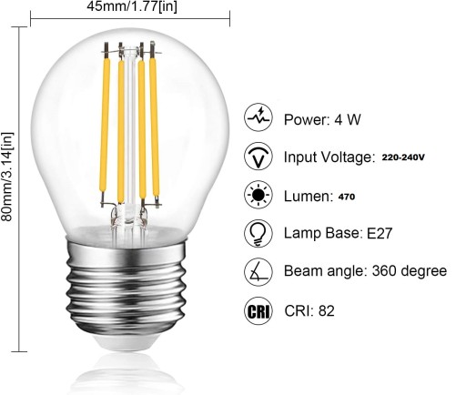 - W zestawie znajdują się żarówki filament E27 duży gwint, barwa neutralna