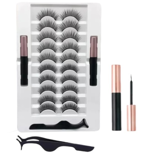 ★ SZTUCZNE RZĘSY MAGNETYCZNE 10 SZT. + PĘSETA + 2 SZT. EYELINER ★
