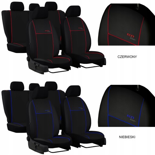 Nasze pokrowce ECO LINE zakrywają fotele w całości. Część frontowa (oparcie i siedzisko) przykryte są skórą ekologiczną, natomiast plecy, zagłówki oraz boczne wykończenia pokrowców wykonane są z mocnego czarnego materiału. Dzięki temu rozwiązaniu oryginalna tapicerka foteli jest chroniona przed zniszczeniem oraz zabrudzeniami w najbardziej narażonych na to miejscach.