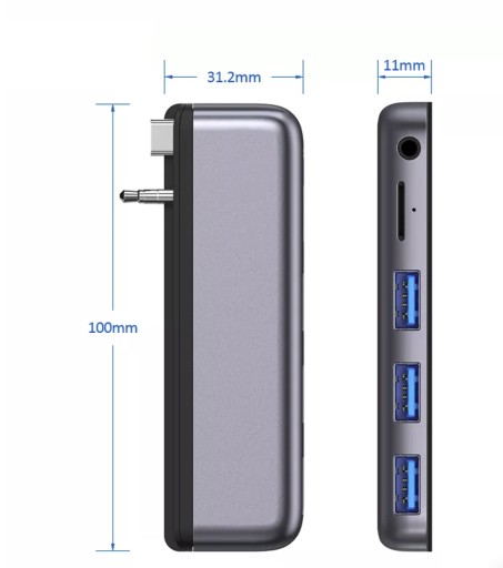 Niewielkie wymiary Huba ( Długość 10cm, szerokość 3,2cm ) sprawiają, że możesz mieć go zawsze przy sobie, w torbie na laptopa lub nawet w kieszeni kurtki lub bagażu.