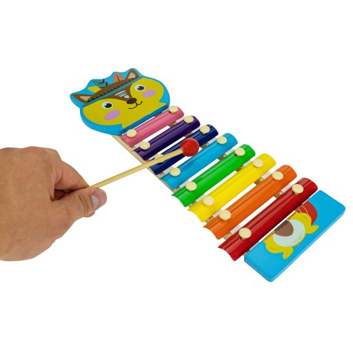 Dzieci uwielbiają muzykę już od najmłodszych lat. Pierwszym i najprostszym instrumentem do jej poznania będą kolorowe cymbałki. Stworzone z 8 metalowych blaszek w pełnej gamie dźwiękowej. Można na nich grać proste melodie i piosenki. Cymbałki wykonane zostały z wysokiej jakości drewna. Boki i krawędzie zestawu zostały dokładnie wyszlifowane, aby były bezpieczne podczas zabawy. Cymbałki pozwalają na ćwiczenie koordynacji ruchowej, precyzyjności, a przede wszystkim rozwijają poczucie rytmu i rozpoznawalność dźwięków.