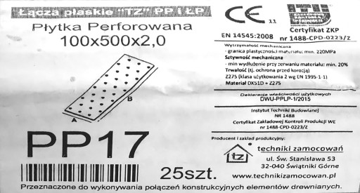 Płytki perforowane. Łączniki ciesielskie płaskie