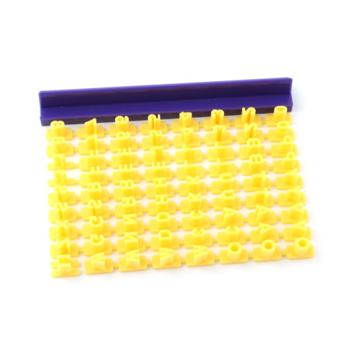 W skład zestawu wchodzi 72 szt. znaków + prowadnica do układania.