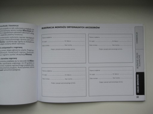 Oryginalna Polska książka serwisowa (przeglądów) do samochodów dostawczych-użytkowych