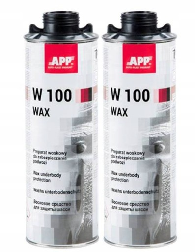APP W100 Wax jest woskowym preparatem do zabezpieczenia antykorozyjnego podwozi samochodów osobowych, autobusów i pojazdów ciężarowych. Posiadając bardzo dobrą przyczepność do PVC jest przeznaczony do wzmacniania fabrycznego zabezpieczenia podwozi w nowych samochodach jak również do regeneracji ochrony antykorozyjnej po naprawach blacharsko-lakierniczych. Tworzy trwale elastyczną powłokę bardzo dobrze przylegającą do podłoża. Test odporności na roztwór soli zgodny z normą DIN 53210: 200 godzin.