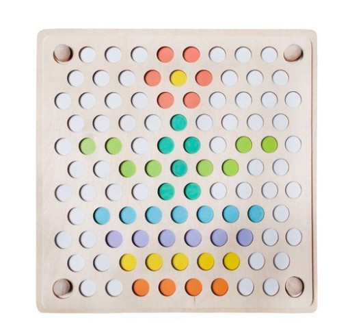 ✅ Układanka to również doskonały sposób na ćwiczenie małych rączek i zdolności manualnych. Na początku należy wybrać (wyłowić) potrzebną kulkę z grupy innych, potem odpowiednio ustawić go w małych paluszkach, a następnie trafić nim w dziurkę w planszy.
