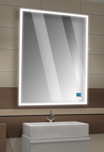 СВЕТОДИОДНОЕ ЗЕРКАЛО в AL FRAME, 60x70см, с часами и выключателем.