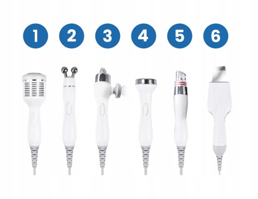 Urządzenie wyposażone jest w 6 różnych głowic, z których każda przeznaczona jest do innego zabiegu pielęgnacyjnego.