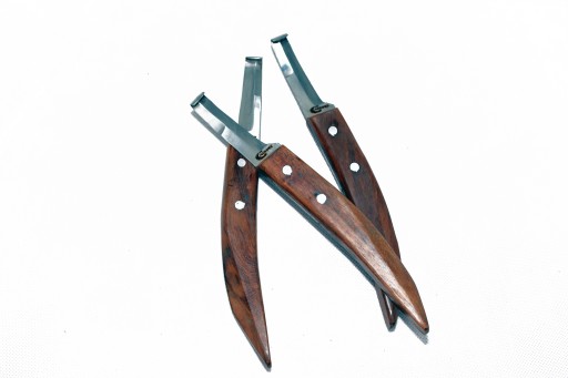 Nóż dwustronny do kopyt profesjonalny . Wykonany z bardzo dobrej selekcjonowanej stali nie rdzewnej.Rączka solidna wykonana z drzewa bukowego.Profesjonalne noże wyprodukowane w Anglii .Kup nie będziesz zawiedziony.Cena dotyczy oczywiście jednej sztuki.