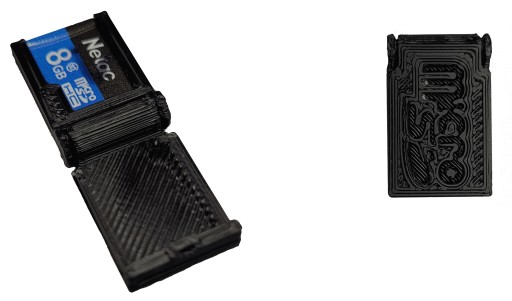 Organizer na kartę micro SD ułatwia odnalezienie karty na przykład w plecaku, portfelu skórzanym, torbie lub torebce oraz zabezpiecza samą kartę przed uszkodzeniem. Posiada zatrzask zabezpieczające przed samo otwarciem się etui. Slot posiada wejście na jedna kartę.